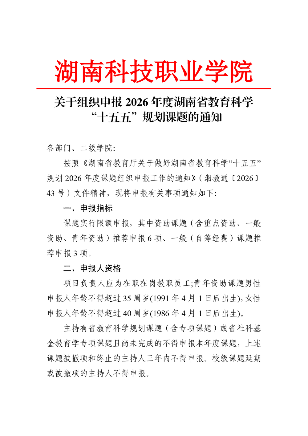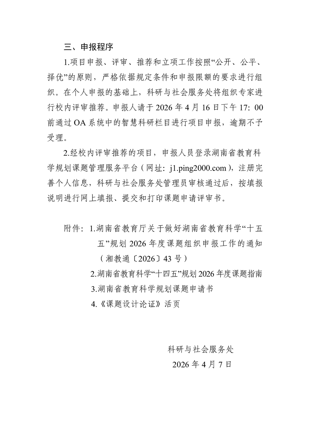 附件1:湖南省教育厅关于做好湖南省教育科学“十五五”规划2026年度课题组织申报工作的通知.pdf