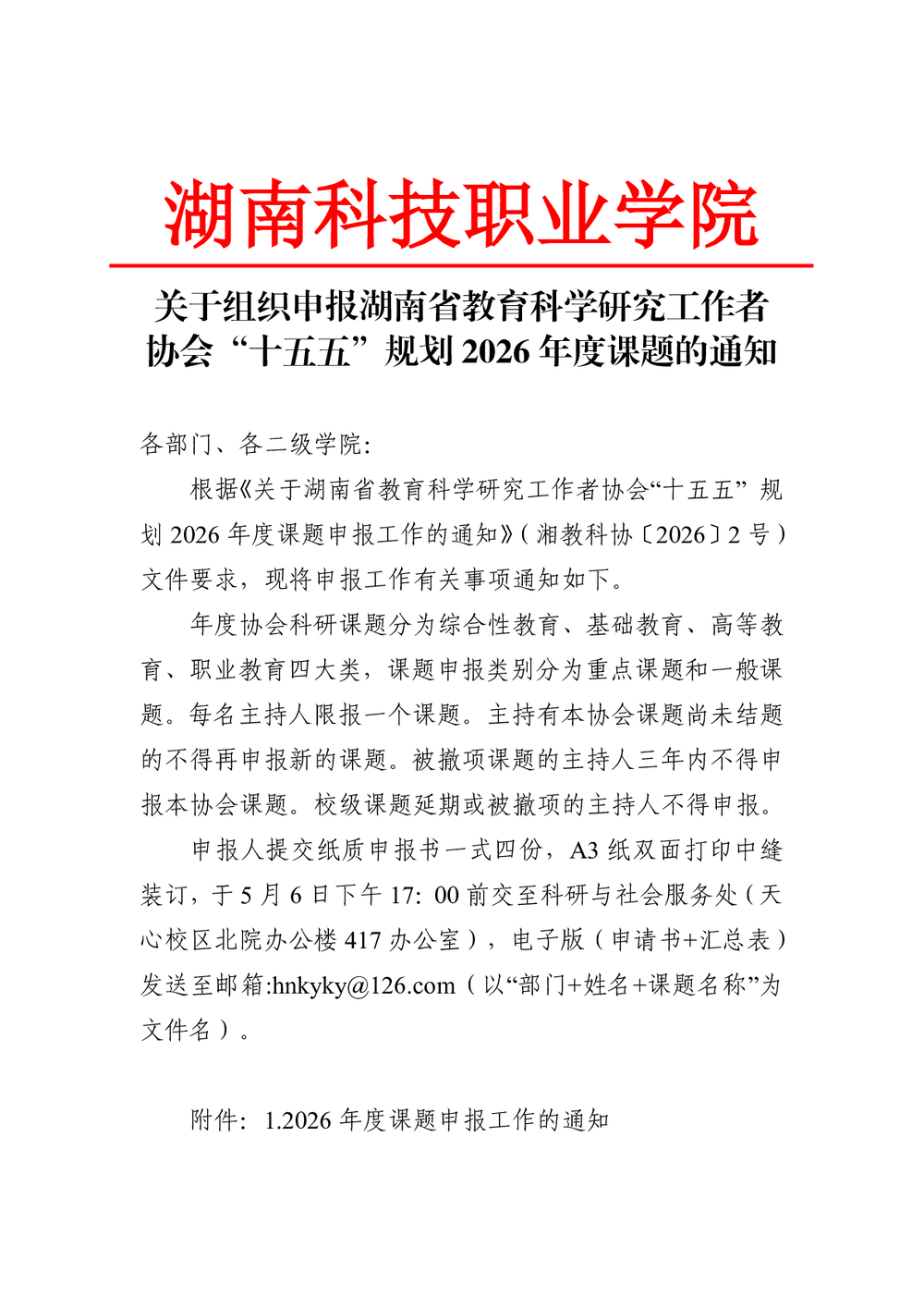 关于组织申报湖南省教育科学研究工作者协会“十五五”规划2026年度课题的通知